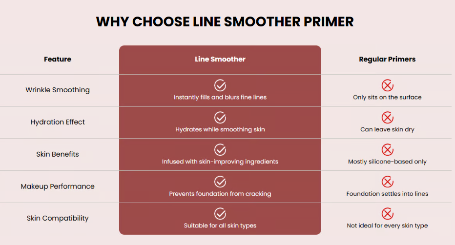I don't even wear foundation most days! Living in the Florida humidity, heavy makeup just melts off anyway. I apply this Line Smoother primer over my morning moisturizer, and it gives my skin this beautiful, soft-focus matte finish. It hides my pores and softens my smile lines instantly.